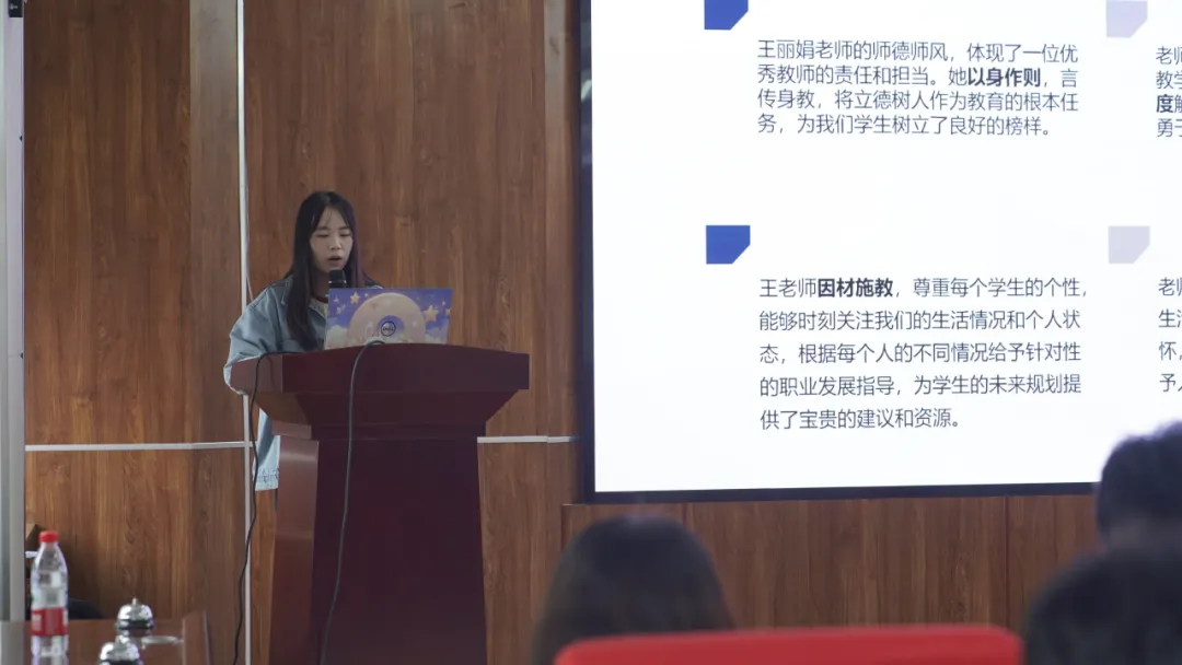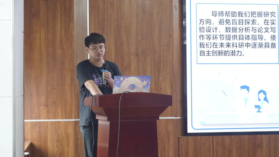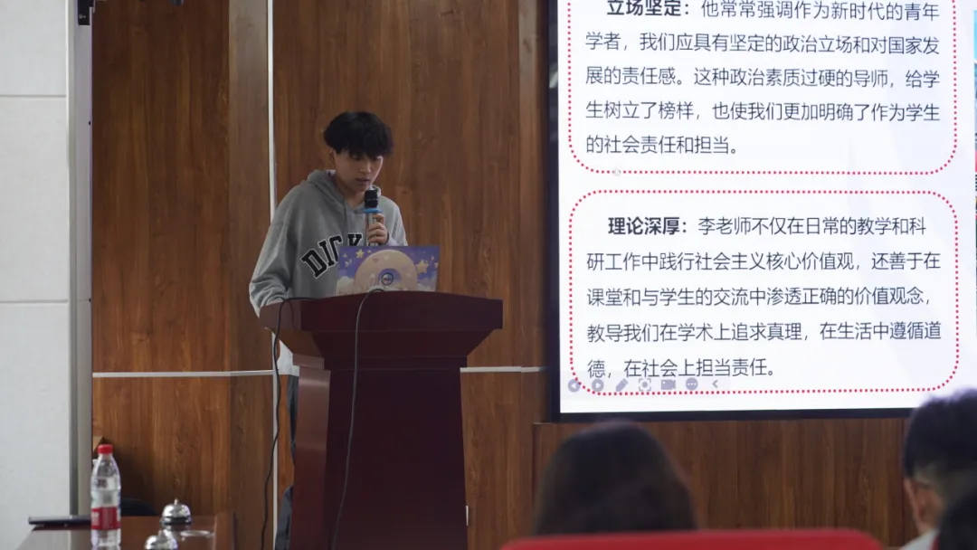展示环节中,同学们或深情诉说,或激昂陈述,从不同角度讲述了心目中的良师故事。他们回顾了导师在学术科研中的严谨求实与悉心指导,感念在人生规划与思想成长中所获得的谆谆教诲与无私帮助,更分享了日常生活中导师带来的温暖关怀与感动点滴。一段段真挚的讲述,生动诠释了“传道、授业、解惑”的师道精神。