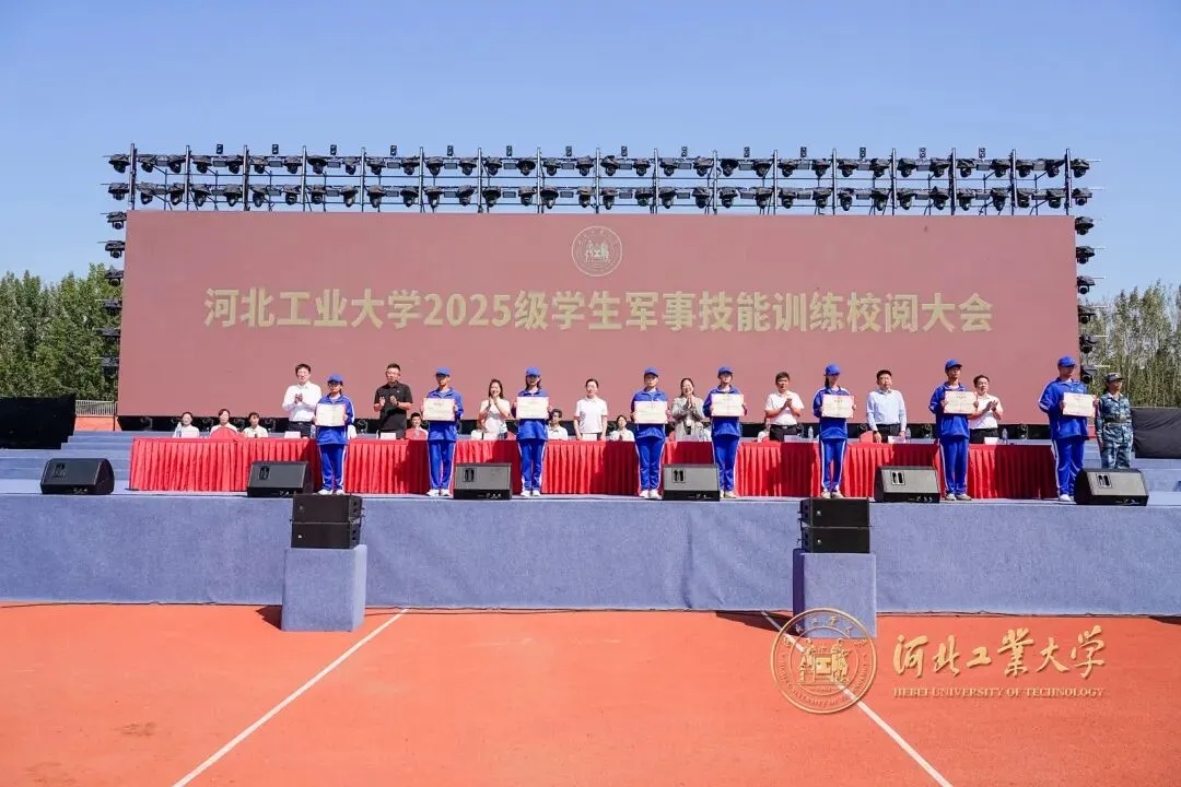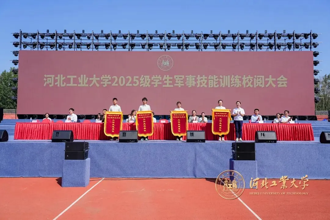 风拂征衣秋意爽,军姿如柏气轩昂。9月20日上午,河北工业大学2025级学生军事技能训练校阅大会在红桥校区东院操场与北辰校区体育中心相继举行。校党委副书记赵斌,校党委常委、副校长陈鸿雁出席大会。校内各单位、部门负责同志,各学院军训工作领导小组负责人、承训教官、2025级学生辅导员和2025级全体本科生参加大会。