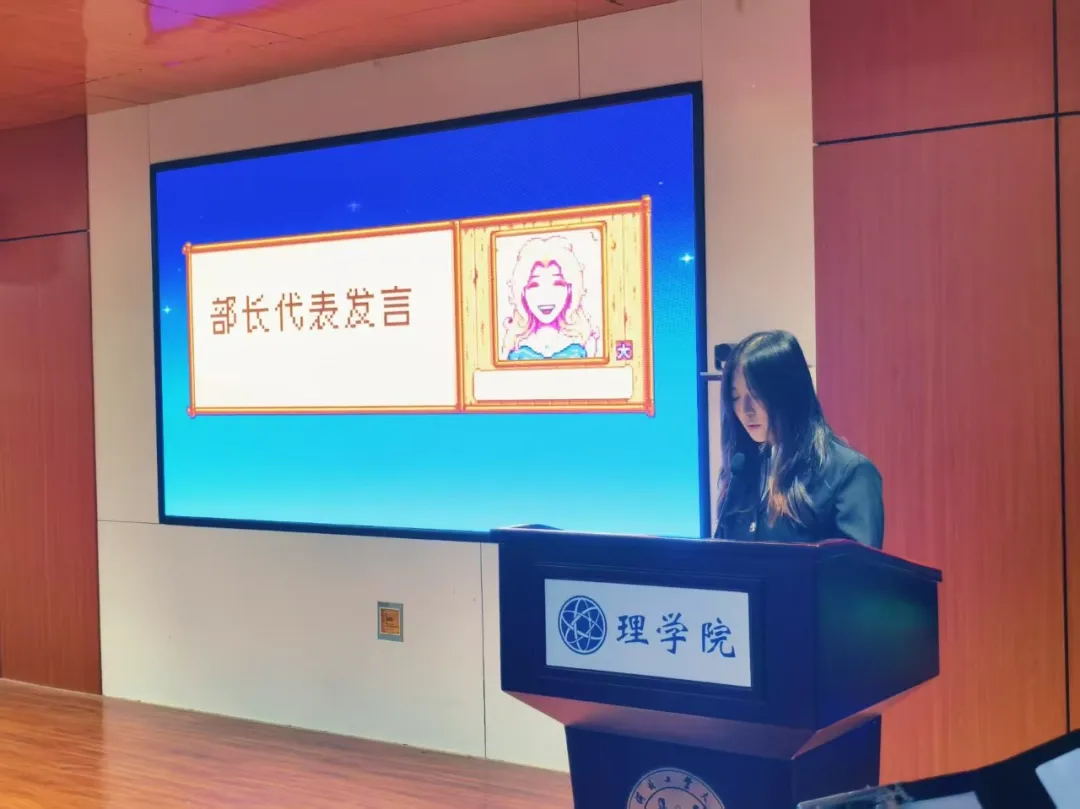 组织管理部部长朱虹伊作为部长代表发言。她感谢学校和老师为同学们搭建了宝贵的实践平台,并分享了自己从部员到部长的成长历程,同时倡议成员积极投身工作,共同推动自管会发展,让田野课堂活动惠及更多同学。