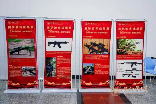 演讲比赛进行期间,大学生活动中心大厅同步开展校国防教育成果展与装备模型展示。89式狙击步枪、191式自动步枪等模型前,同学们驻足观看,不时讨论装备的性能与历史;国防动员、信息化战争等知识展板前,大家认真阅读,在图文里学习国防常识。这场“沉浸式”展览,让国防知识不再局限于课本,变得可看、可感、可学。